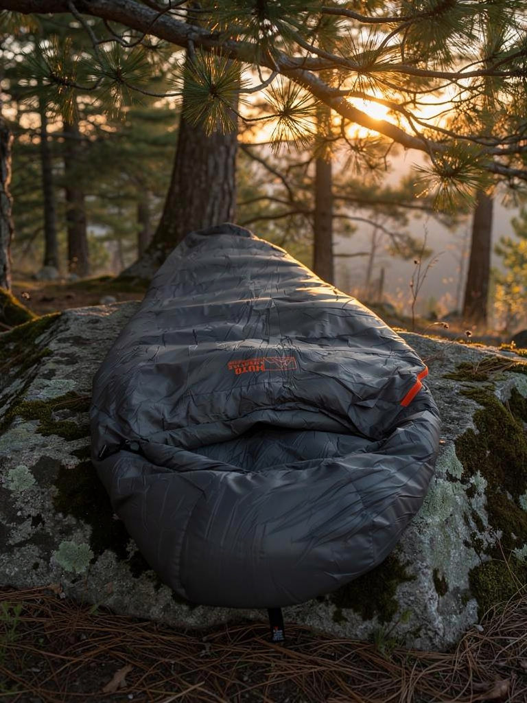 HUTO 3-Season Down Sleeping Bag – 1000g down insulation, 20D ripstop nylon shell with DWR, lightweight 3.4 lbs, packs small, comfort rated 0°C to -5°C for hunters and campers.