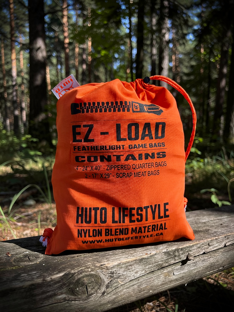 Crafted from a Nylon Taslan Ripstop blend, these bags deliver exceptional breathability to keep meat cool while protecting it from flies and debris. The bright Blazer Orange color with reflective HUTO logo ensures visibility during late-night pack-outs, while closed-knit seams and webbing loops make hanging simple—even on solo hunts.